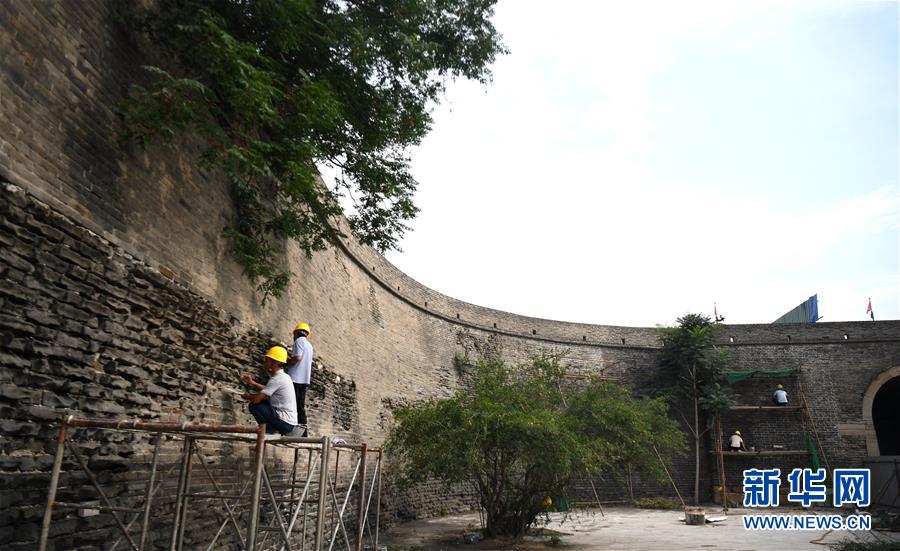 7月2日,工作人員在永年廣府古城修繕城墻。經(jīng)國家文物局和河北省文物局批準(zhǔn),河北永年廣府古城修繕工程已全面啟動。在文物專家全程參與下,按照“不改變文物原狀”原則進行修繕,預(yù)計2021年4月底完工。永年廣府古城擁有華北地區(qū)保存最完整的古城墻,現(xiàn)為全國重點文物保護單位。新華社記者王曉攝