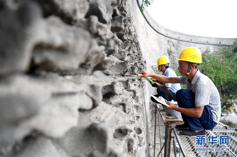 7月2日,工作人員在永年廣府古城修繕城墻。經國家文物局和河北省文物局批準,河北永年廣府古城修繕工程已全面啟動。在文物專家全程參與下,按照“不改變文物原狀”原則進行修繕,預計2021年4月底完工。永年廣府古城擁有華北地區(qū)保存最完整的古城墻,現(xiàn)為全國重點文物保護單位。新華社記者王曉攝