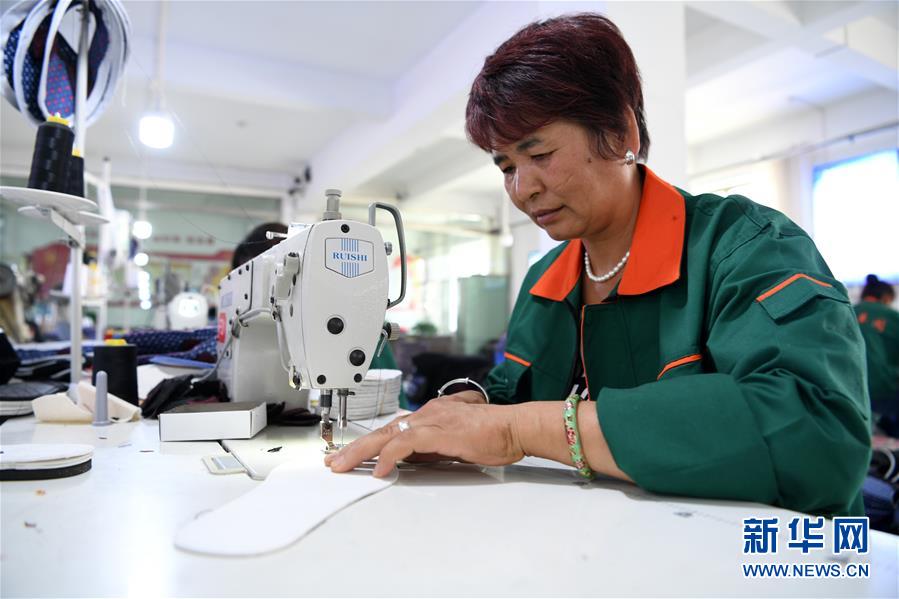 7月2日,臨夏縣百利布鞋加工農(nóng)民專業(yè)合作社員工在加工布鞋。甘肅省臨夏回族自治州臨夏縣將布鞋加工定為重點(diǎn)扶持發(fā)展的產(chǎn)業(yè),采用“政府+公司+貧困戶”的產(chǎn)業(yè)扶貧模式,由政府主導(dǎo)、企業(yè)出資,在貧困村建設(shè)“扶貧車間”,吸納貧困群眾從事布鞋加工產(chǎn)業(yè)增加收入。截至2019年底,當(dāng)?shù)夭夹庸て髽I(yè)和加工戶遍及近百個(gè)行政村,從業(yè)人員達(dá)到4000多人,累計(jì)生產(chǎn)布鞋600多萬(wàn)雙,實(shí)現(xiàn)銷售收入2.32億元。新華社記者范培珅攝