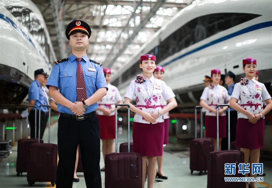 7月3日,擔任首發(fā)列車值乘工作的貴陽客運段乘務(wù)員在貴陽亮相。 新華社記者 劉續(xù) 攝