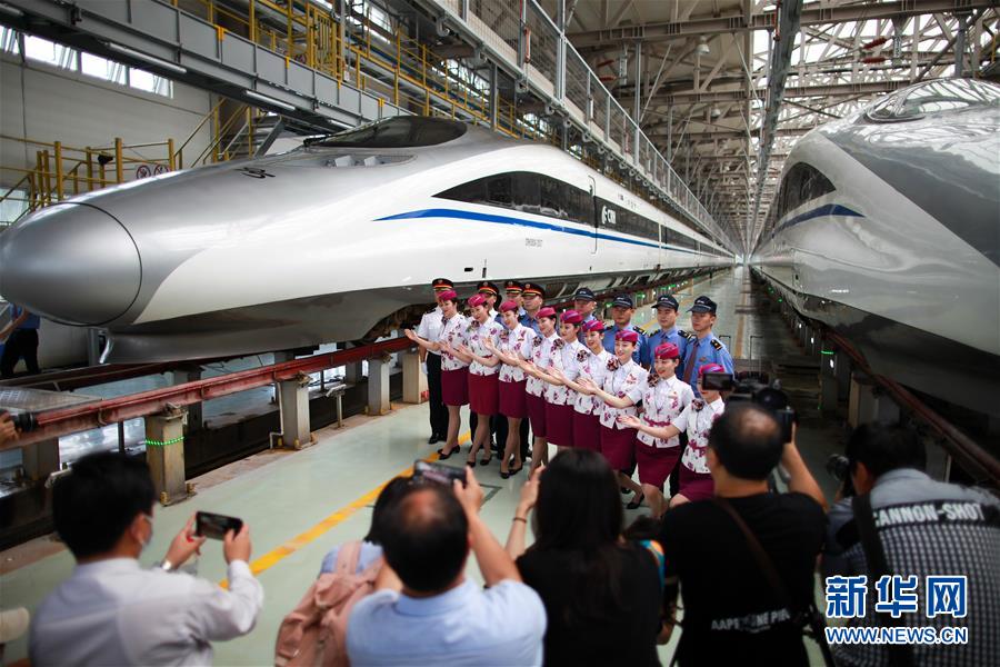 7月3日,擔任首發(fā)列車值乘工作的班組人員在貴陽亮相。 新華社記者 劉續(xù) 攝