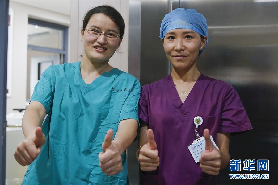 7月3日,中日友好醫(yī)院檢驗科新冠核酸檢測實驗室的閆克芹(左)和張鑫在短暫午休時脫下了防護(hù)服。新華社記者張玉薇攝
