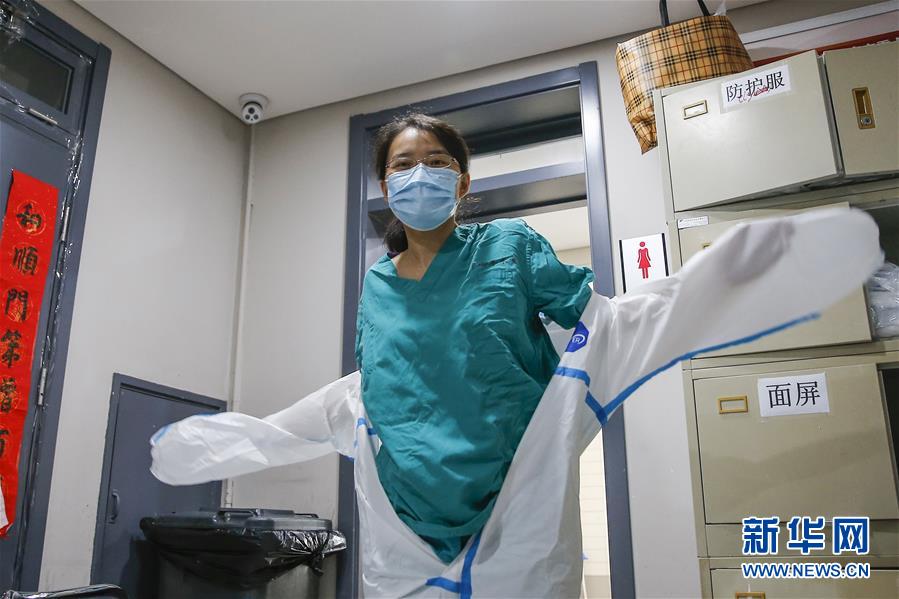 7月3日,中日友好醫(yī)院檢驗科新冠核酸檢測實驗室的檢驗人員閆克芹在進(jìn)入污染區(qū)前穿戴防護(hù)裝備。新華社記者張玉薇攝
