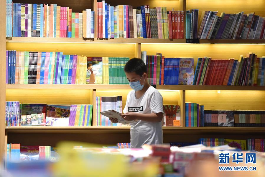 7月5日,一名小朋友在河北省定州市新華書店挑選圖書。近日,河北省定州市新華書店在做好疫情防控的前提下,開展“樂享圖書嘉年華”系列活動,通過舉辦圖書聯(lián)展、親子閱讀、少兒讀物推介等活動,吸引少年兒童走進圖書館,感受書香陪伴的夏天。新華社記者朱旭東攝