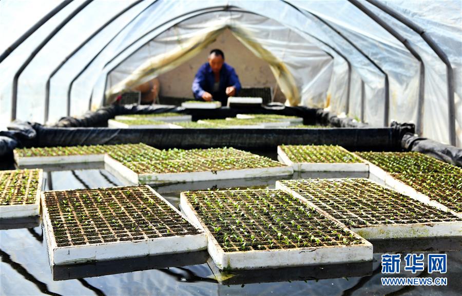 陜西太白縣咀頭鎮(zhèn)塘口村的村民通過“漂浮育苗”的方式進行蔬菜育苗(7月4日攝)。新華社記者劉瀟攝