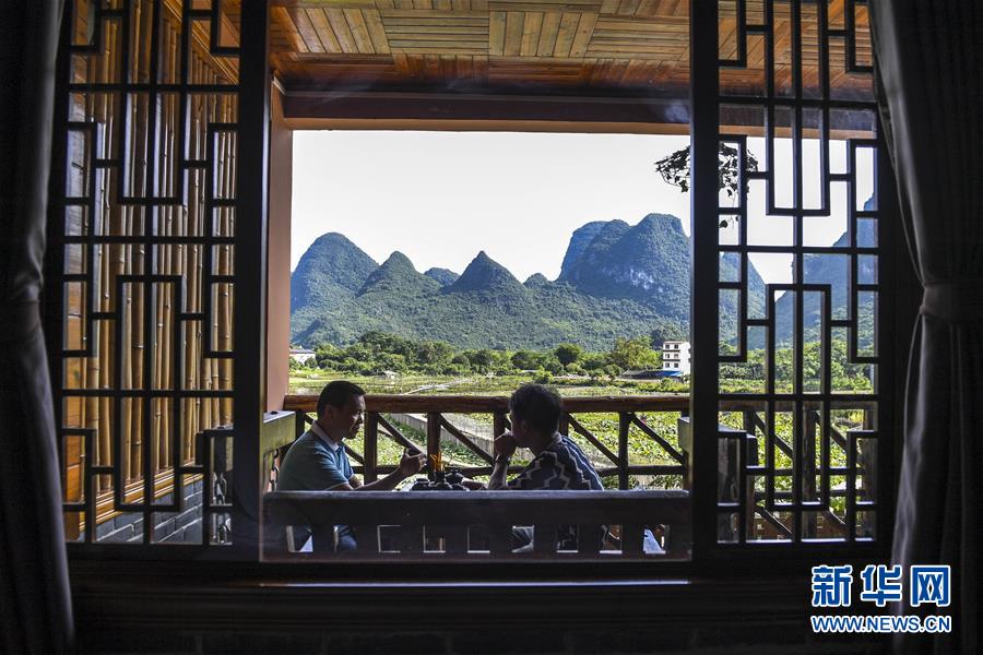 陽朔縣位于廣西東北部,桂林市區(qū)南面,宜人的山水風(fēng)光與悠久的歷史文化吸引著中外游客前來觀光。近年來,當(dāng)?shù)卣e極發(fā)展特色精品民宿產(chǎn)業(yè),鼓勵當(dāng)?shù)厝罕妳⑴c旅游服務(wù),讓游客獲得更周到服務(wù)的同時,促進當(dāng)?shù)厝罕娋蜆I(yè)增收,助力鄉(xiāng)村振興。新華社記者曹祎銘攝