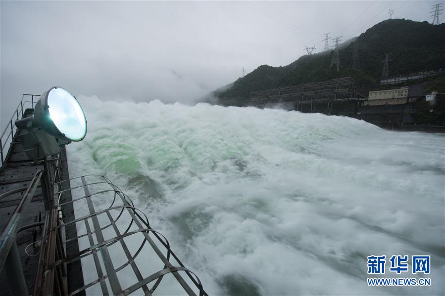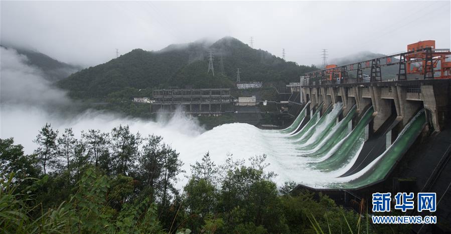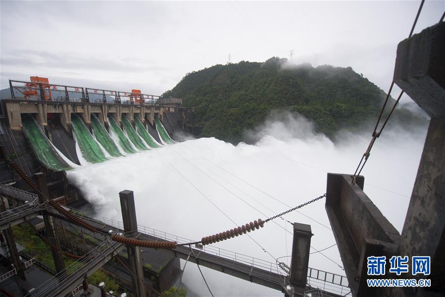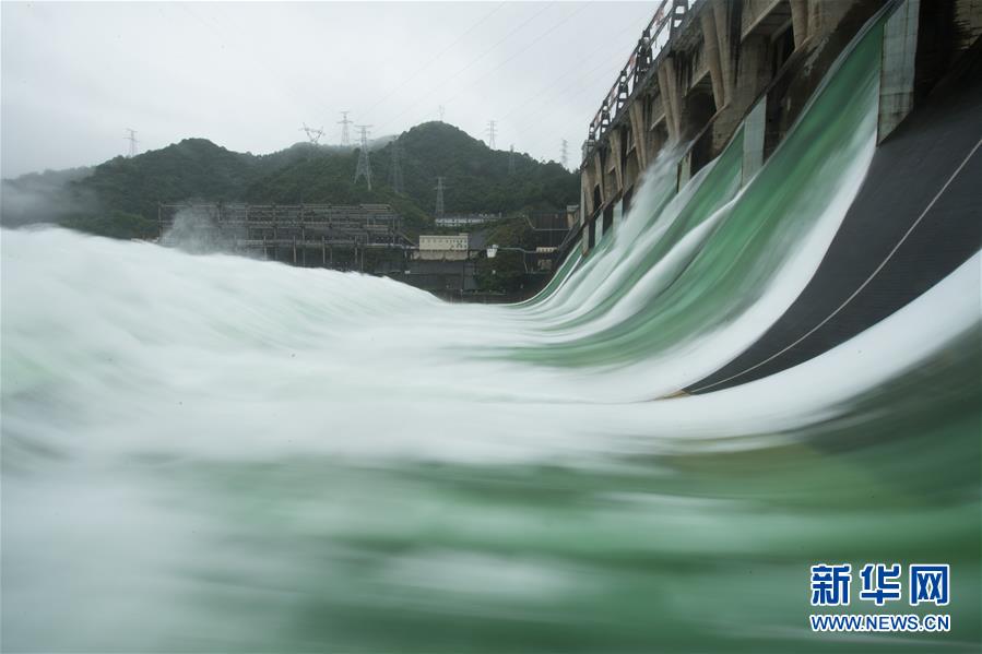 7月7日下午開(kāi)啟7孔泄洪的新安江水庫(kù)。受持續(xù)降水影響,浙江新安江水庫(kù)水位持續(xù)快速上升。繼當(dāng)日10時(shí)開(kāi)啟3孔、12時(shí)開(kāi)啟5孔泄洪后,新安江水庫(kù)于16時(shí)增加到7孔泄洪。新安江水庫(kù)是華東地區(qū)最大的水庫(kù),在錢塘江流域的防洪度汛中起到關(guān)鍵作用。新華社記者翁忻旸攝