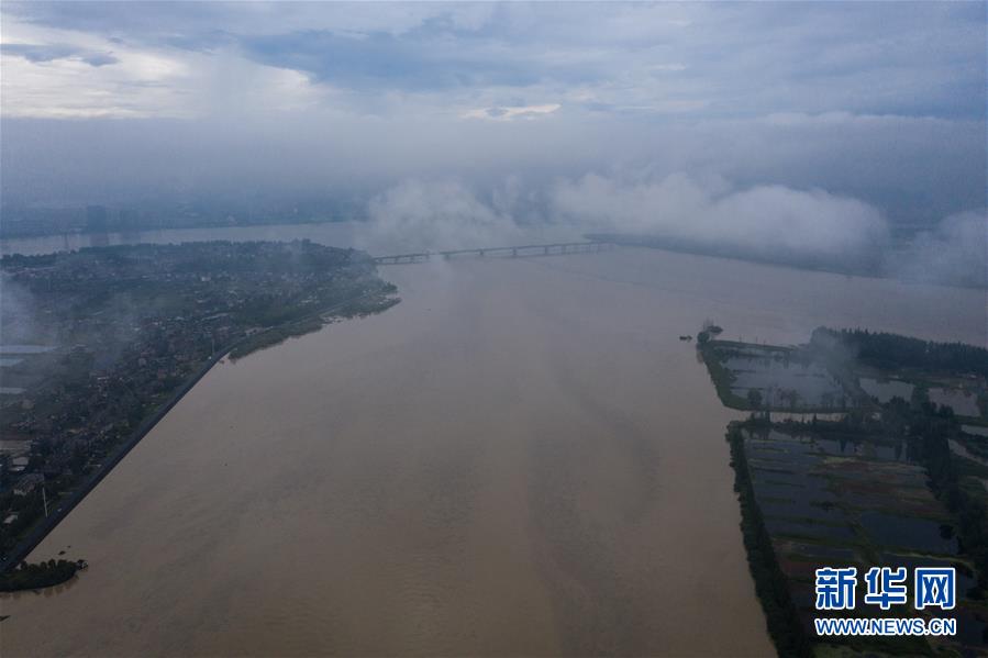 7月8日拍攝的杭州市富陽(yáng)區(qū)錢塘江流域(無(wú)人機(jī)照片)。新華社記者徐昱攝
