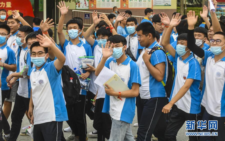 7月8日,在福建省福州教育學(xué)院附屬中學(xué)考點(diǎn),考生和同學(xué)揮手告別。當(dāng)日,全國部分地區(qū)2020年高考結(jié)束。新華社記者宋為偉攝