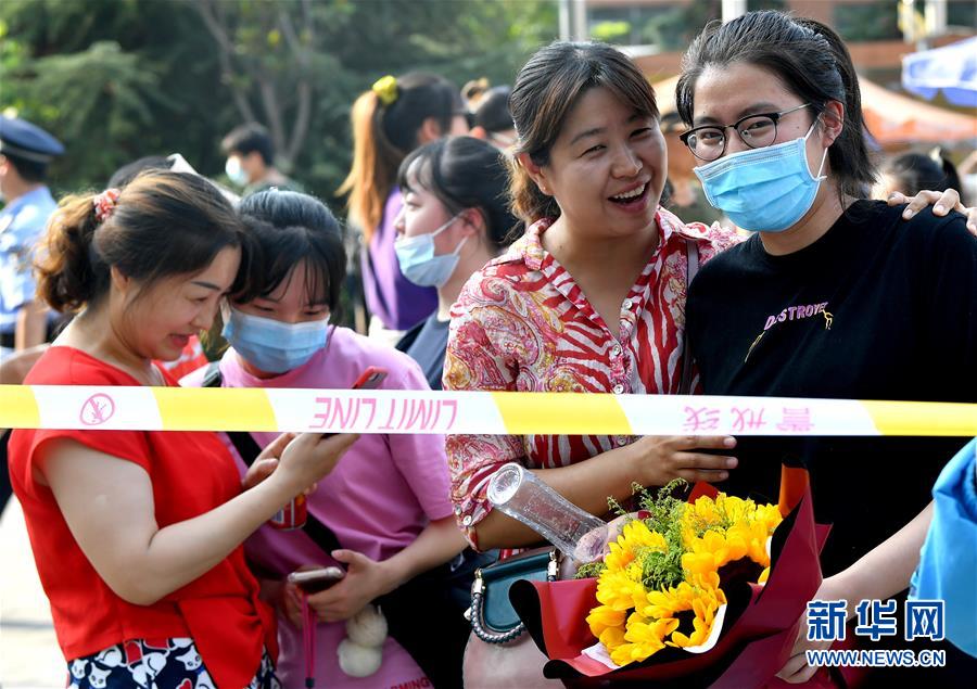 7月8日,吉林省長春希望高中考點(diǎn)的考生接過家長手中的花束。當(dāng)日,全國部分地區(qū)2020年高考結(jié)束。新華社記者張楠攝