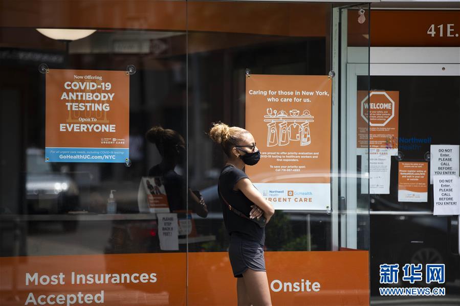 7月8日,一名女子在美國(guó)紐約一家診所外等候進(jìn)行新冠病毒檢測(cè)。美國(guó)約翰斯·霍普金斯大學(xué)8日發(fā)布的新冠疫情最新統(tǒng)計(jì)數(shù)據(jù)顯示,美國(guó)累計(jì)確診病例超過300萬例。數(shù)據(jù)顯示,截至美國(guó)東部時(shí)間8日11時(shí)34分(北京時(shí)間23時(shí)34分),美國(guó)累計(jì)確診病例3016515例,累計(jì)死亡病例131594例。新華社記者王迎攝