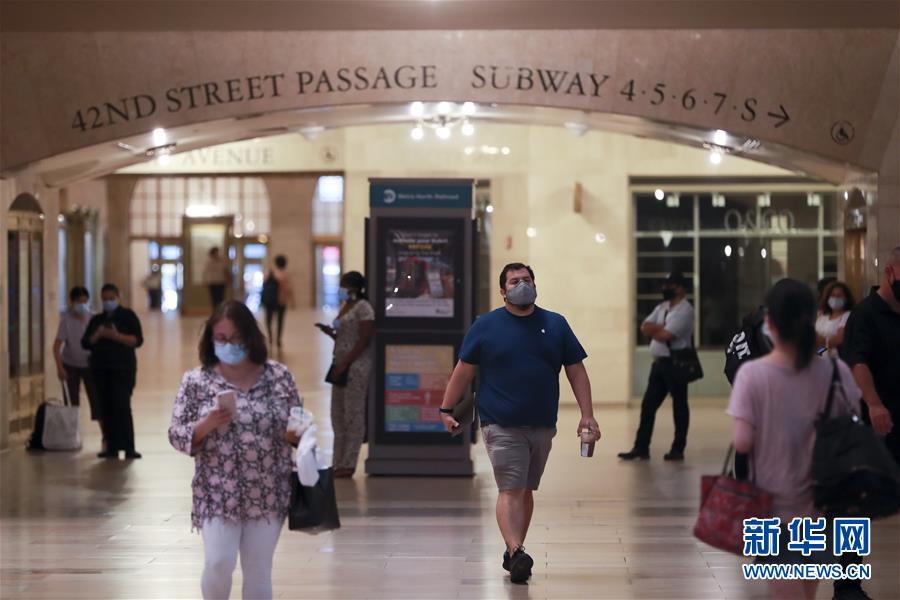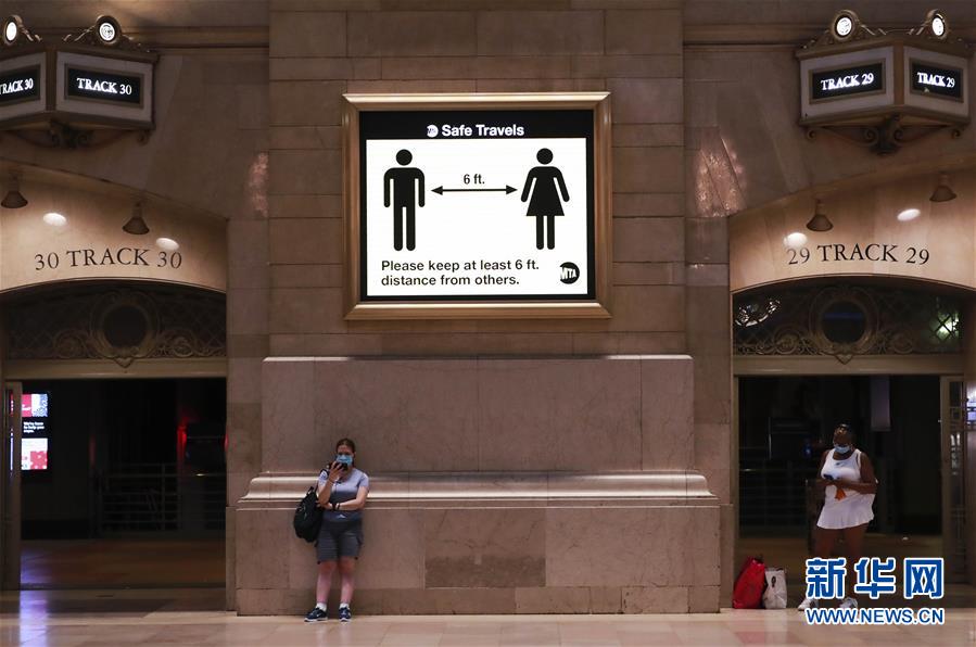 7月8日,人們?cè)诿绹?guó)紐約中央車站內(nèi)等候乘車。美國(guó)約翰斯·霍普金斯大學(xué)8日發(fā)布的新冠疫情最新統(tǒng)計(jì)數(shù)據(jù)顯示,美國(guó)累計(jì)確診病例超過300萬例。數(shù)據(jù)顯示,截至美國(guó)東部時(shí)間8日11時(shí)34分(北京時(shí)間23時(shí)34分),美國(guó)累計(jì)確診病例3016515例,累計(jì)死亡病例131594例。新華社記者王迎攝