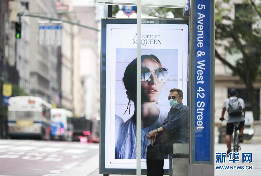 7月8日,一名男子在紐約第五大道的公交車站等車。美國(guó)約翰斯·霍普金斯大學(xué)8日發(fā)布的新冠疫情最新統(tǒng)計(jì)數(shù)據(jù)顯示,美國(guó)累計(jì)確診病例超過300萬例。數(shù)據(jù)顯示,截至美國(guó)東部時(shí)間8日11時(shí)34分(北京時(shí)間23時(shí)34分),美國(guó)累計(jì)確診病例3016515例,累計(jì)死亡病例131594例。新華社記者王迎攝