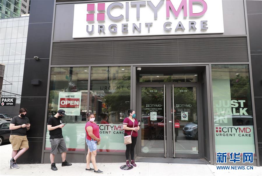 7月8日,人們?cè)诿绹?guó)紐約一家診所外排隊(duì)等候進(jìn)行新冠病毒檢測(cè)。美國(guó)約翰斯·霍普金斯大學(xué)8日發(fā)布的新冠疫情最新統(tǒng)計(jì)數(shù)據(jù)顯示,美國(guó)累計(jì)確診病例超過300萬例。數(shù)據(jù)顯示,截至美國(guó)東部時(shí)間8日11時(shí)34分(北京時(shí)間23時(shí)34分),美國(guó)累計(jì)確診病例3016515例,累計(jì)死亡病例131594例。新華社記者王迎攝