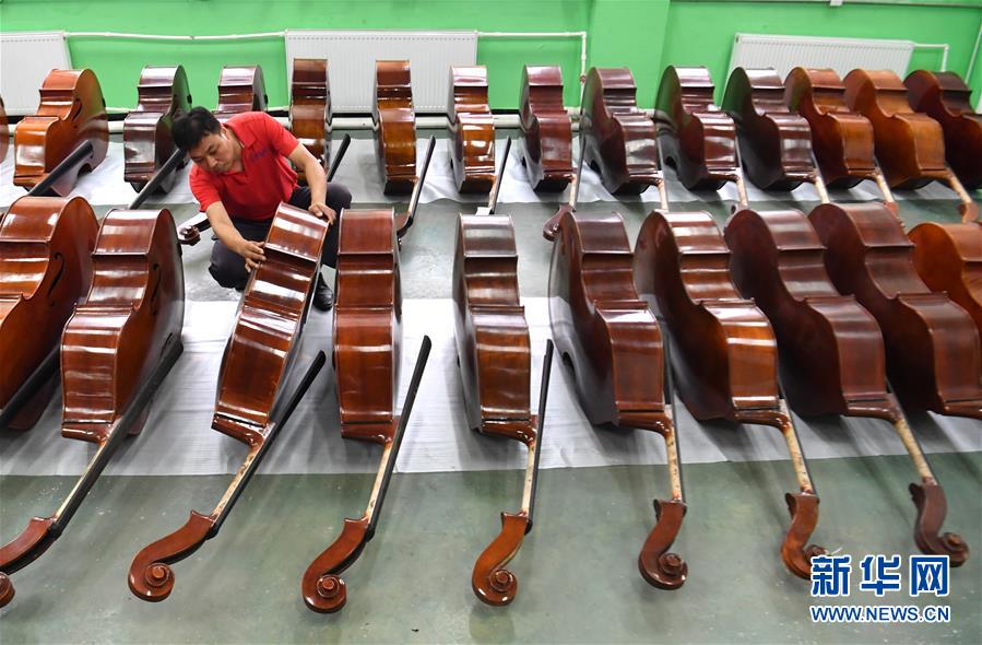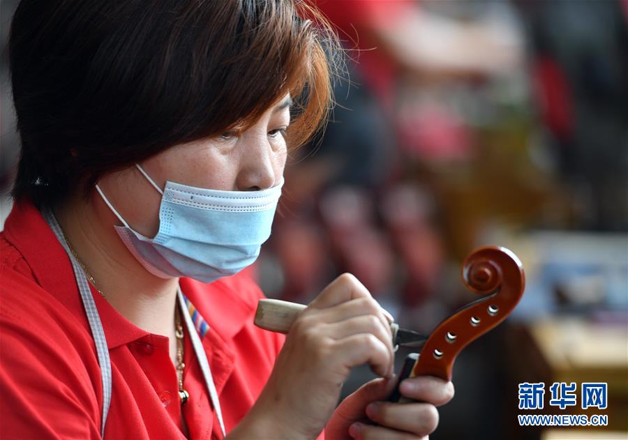 工人在河南駐馬店市確山縣提琴產(chǎn)業(yè)園提琴生產(chǎn)車(chē)間制作提琴(6月24日攝)。新華社記者李嘉南攝