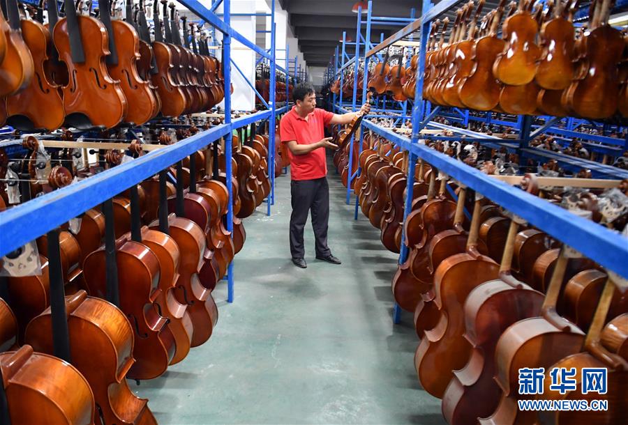 工人在河南駐馬店市確山縣提琴產(chǎn)業(yè)園提琴生產(chǎn)車(chē)間檢查提琴質(zhì)量(6月23日攝)。新華社記者李嘉南攝