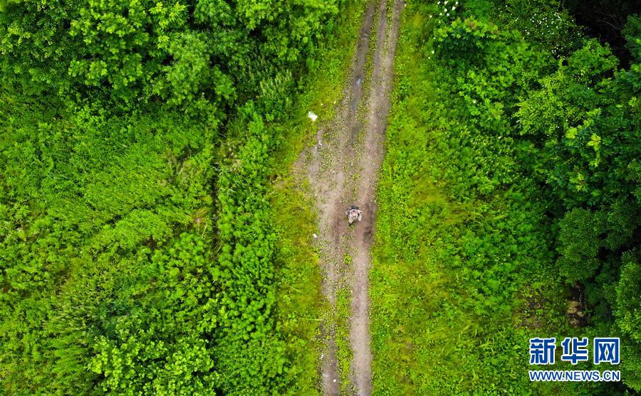 7月8日,董紅雨在迎春林業(yè)局有限公司施業(yè)區(qū)內(nèi)進(jìn)行野生東北虎信息搜集和巡護(hù)工作(無人機(jī)照片)。