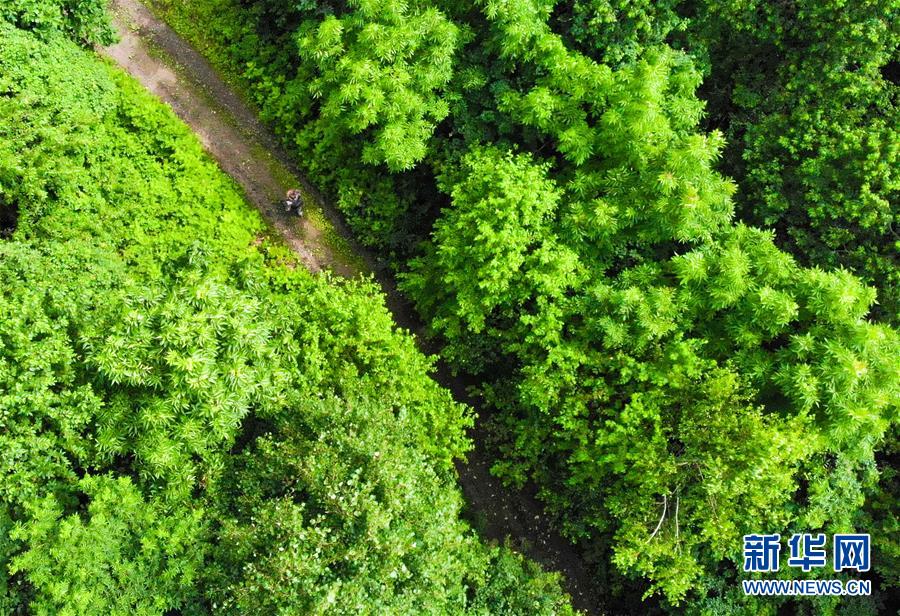 7月8日,董紅雨在迎春林業(yè)局有限公司施業(yè)區(qū)內(nèi)進行野生東北虎信息搜集和巡護工作(無人機照片)。新華社記者王松攝