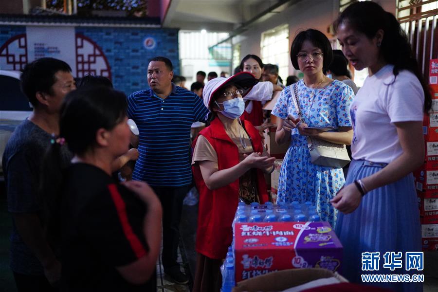 7月9日,村民在領(lǐng)取物資。當(dāng)日,江西鄱陽縣鄱陽鎮(zhèn)因洪水受災(zāi)的村民被轉(zhuǎn)移到多個(gè)集中安置點(diǎn)。在鄱陽縣五一中心學(xué)校安置點(diǎn),志愿者和工作人員接到任務(wù)后不到十小時(shí)內(nèi),為被轉(zhuǎn)移村民布置了28間教室,供519人安頓,并為村民發(fā)放褥子、床單、枕頭、盒飯、飲用水等物資。新華社記者周密攝
