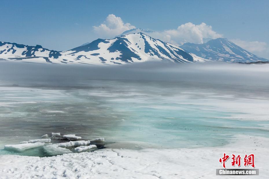 當(dāng)?shù)貢r(shí)間2020年7月7日,俄羅斯堪察加半島,Gorely火山附近的Sredinnoye火山湖。這個(gè)湖斷斷續(xù)續(xù)的,是6月底到8月初融雪形成的。圖片來源:視覺中國(guó)