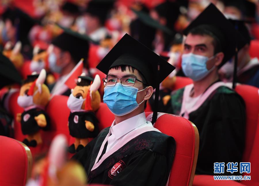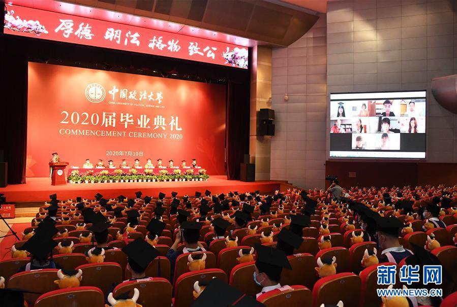 7月10日拍攝的中國政法大學(xué)2020屆畢業(yè)典禮現(xiàn)場。當(dāng)日,中國政法大學(xué)舉行2020屆畢業(yè)典禮。由于疫情防控需要,僅少量在校畢業(yè)生在中國政法大學(xué)昌平校區(qū)禮堂現(xiàn)場參加畢業(yè)典禮,更多畢業(yè)生通過線上直播參與。新華社記者任超攝