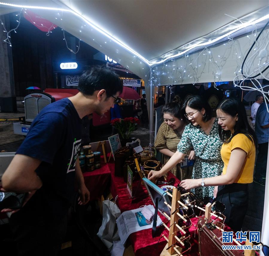 7月10日,市民在嘉年華現(xiàn)場(chǎng)的特色商品攤位上挑選飾品。新華社記者徐昱攝。