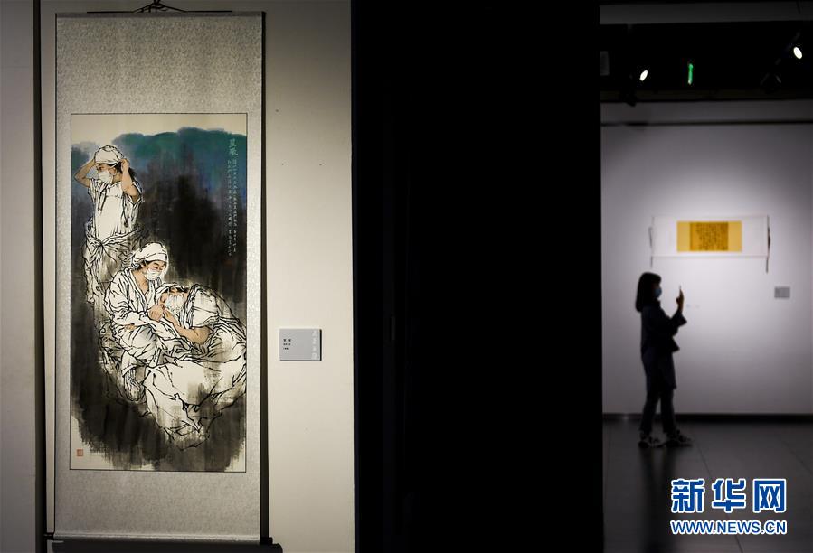 7月11日,觀眾在吉林省抗疫主題美術(shù)·攝影作品展上參觀。近日,“大愛(ài)無(wú)疆——吉林省抗疫主題美術(shù)·攝影作品展”在吉林省工藝美術(shù)館與觀眾見(jiàn)面。展覽共展出抗擊新冠肺炎疫情主題書法、國(guó)畫、油畫、攝影等作品367件(組)。新華社 記者許暢 攝