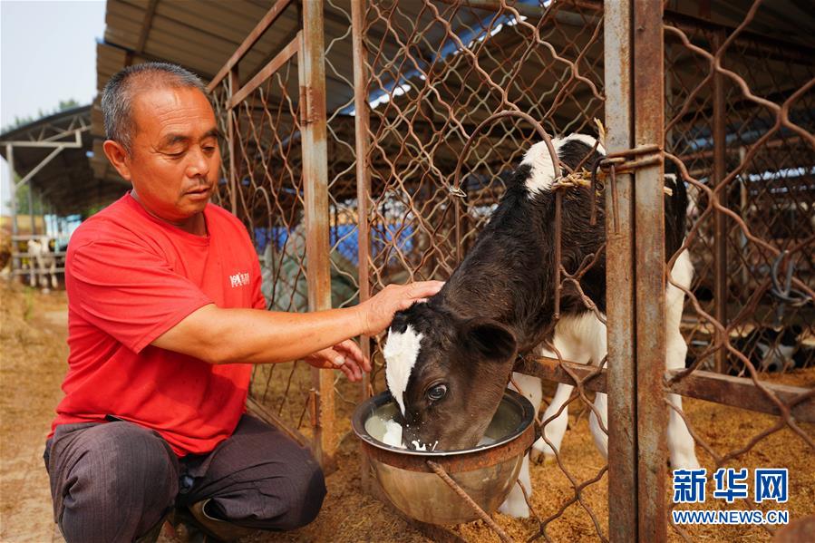 7月11日,河北省清河縣永興奶牛養(yǎng)殖場(chǎng)的工人在給奶牛喂食。近年來(lái),河北省清河縣將扶貧工作與現(xiàn)代農(nóng)業(yè)結(jié)合,以龍頭企業(yè)為引領(lǐng),成立合作社,鼓勵(lì)貧困戶利用扶貧資金入股奶牛養(yǎng)殖場(chǎng),幫助他們常年獲得穩(wěn)定收益。同時(shí),貧困戶農(nóng)閑時(shí)還可到產(chǎn)業(yè)園區(qū)打工,既拿股金,又掙薪金,實(shí)現(xiàn)“造血式”脫貧。新華社記者 牟宇 攝