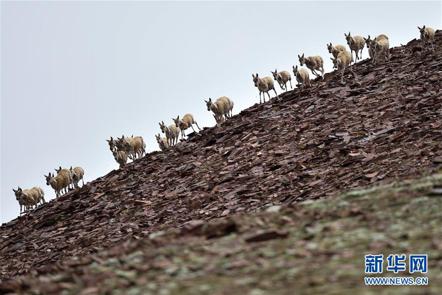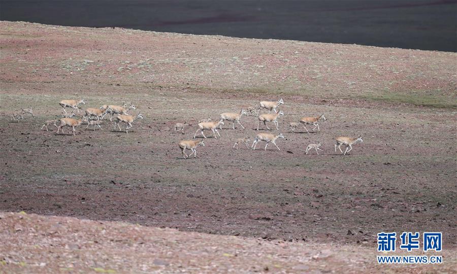 7月7日在可可西里卓乃湖區(qū)域拍攝的藏羚羊。目前正值藏羚羊產(chǎn)仔季。來(lái)自青海三江源、新疆阿爾金山、西藏羌塘等地的藏羚羊來(lái)到位于青海省可可西里腹地、被譽(yù)為“藏羚羊大產(chǎn)房”的卓乃湖區(qū)域產(chǎn)仔。新華社記者 張龍 攝