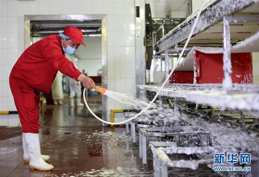 7月14日,北京二商肉類食品集團有限公司員工對肉類分割流水線進行清洗消毒。北京二商肉類食品集團有限公司是保障北京肉類市場供應的主要企業(yè)之一。新冠肺炎疫情以來,企業(yè)嚴格實施北京市、農業(yè)農村部和中國肉類協會的防疫要求,對進入廠區(qū)的人員、車輛以及原料采購、屠宰分割、產品加工、貯藏運輸、廢棄物收集及污水處理等生產環(huán)節(jié)嚴格防疫,強調源頭把關徹底消毒。目前,集團公司下屬多家生豬屠宰加工基地正常運營,保質保量供應北京市場需求。新華社記者 李欣 攝
