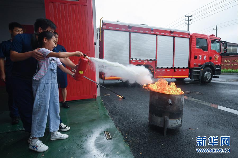 7月16日,一名小學生在東林鎮(zhèn)消防綜合應(yīng)急救援隊隊員的指導下學習使用滅火器。當日,浙江省湖州市吳興區(qū)東林鎮(zhèn)舉辦暑期“安全防護小超人”主題活動?;顒佑舍t(yī)護人員、消防隊員等為學生及家長講授日常安全避險及溺水急救知識,中小學們還在現(xiàn)場學習了簡易包扎、心肺復蘇的正確方式,并了解滅火器、滅火毯等消防器材的使用,為學生平安過暑期打好安全防護“預防針”。新華社記者 徐昱 攝