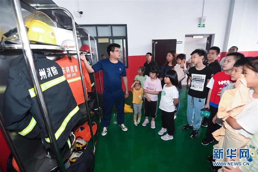 7月16日,東林鎮(zhèn)消防綜合應(yīng)急救援隊隊員在給學生們介紹消防服及消防器材。當日,浙江省湖州市吳興區(qū)東林鎮(zhèn)舉辦暑期“安全防護小超人”主題活動?;顒佑舍t(yī)護人員、消防隊員等為學生及家長講授日常安全避險及溺水急救知識,中小學們還在現(xiàn)場學習了簡易包扎、心肺復蘇的正確方式,并了解滅火器、滅火毯等消防器材的使用,為學生平安過暑期打好安全防護“預防針”。新華社記者 徐昱 攝