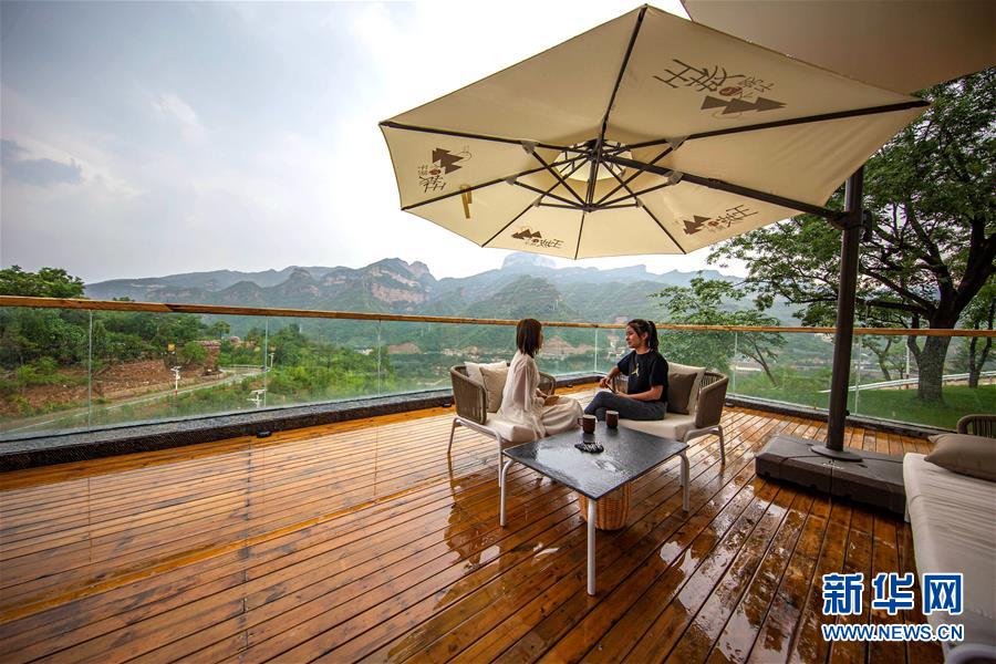 7月15日,游客在武安市活水鄉(xiāng)王坡民宿聊天。近年來,河北省武安市活水鄉(xiāng)依托當(dāng)?shù)刈匀簧鷳B(tài)優(yōu)勢,大力發(fā)展鄉(xiāng)村旅游,利用空閑民居打造特色鄉(xiāng)村精品民宿,為農(nóng)村發(fā)展注入新活力,助力鄉(xiāng)村振興。新華社記者 王曉 攝