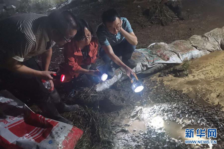 7月13日晚,樅陽縣水利局高級(jí)工程師舒曉安(左一)在處置圩堤突發(fā)險(xiǎn)情。受長江持續(xù)高水位影響,安徽省樅陽縣的鐵銅鄉(xiāng)江心洲已于近日將江心洲上的居民轉(zhuǎn)移安置,而包括搶險(xiǎn)隊(duì)員、鄉(xiāng)鎮(zhèn)干部、水利工程師等在內(nèi)的近300人“留守”在江心洲上巡堤查險(xiǎn),守護(hù)家園。鐵銅鄉(xiāng)位于長江江心洲上,有4個(gè)行政村52個(gè)村民組,耕地面積12000多畝。新華社發(fā)