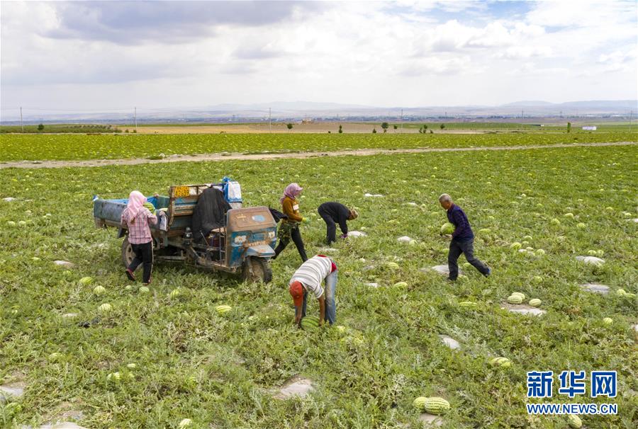 7月16日,在寧夏中衛(wèi)市香山鄉(xiāng)硒砂瓜萬畝示范基地,瓜農(nóng)在采收硒砂瓜。近日,寧夏中衛(wèi)市迎來硒砂瓜豐收季。硒砂瓜是中衛(wèi)市的特色農(nóng)產(chǎn)品,近年來,當(dāng)?shù)夭扇〖夹g(shù)創(chuàng)新、規(guī)?;N植、休耕輪作等多項(xiàng)舉措,讓硒砂瓜種植成為當(dāng)?shù)剞r(nóng)民增收致富的重要產(chǎn)業(yè)。據(jù)了解,今年中衛(wèi)市硒砂瓜種植面積為69.7萬畝。新華社記者楊植森攝