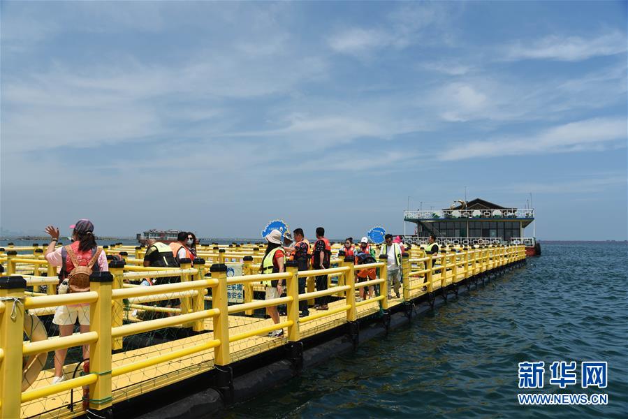 7月17日,游客在榮成桑溝灣泓泰國(guó)家級(jí)海洋牧場(chǎng)觀光體驗(yàn)。近年來(lái),山東省榮成市重點(diǎn)發(fā)展特色海洋旅游產(chǎn)業(yè),打造眾多國(guó)家級(jí)海洋牧場(chǎng),保留修復(fù)傳統(tǒng)海草民居,吸引游客前來(lái)觀光體驗(yàn)。如今特色海洋旅游已逐漸成為榮成經(jīng)濟(jì)發(fā)展新的增長(zhǎng)點(diǎn)。新華社記者王凱攝