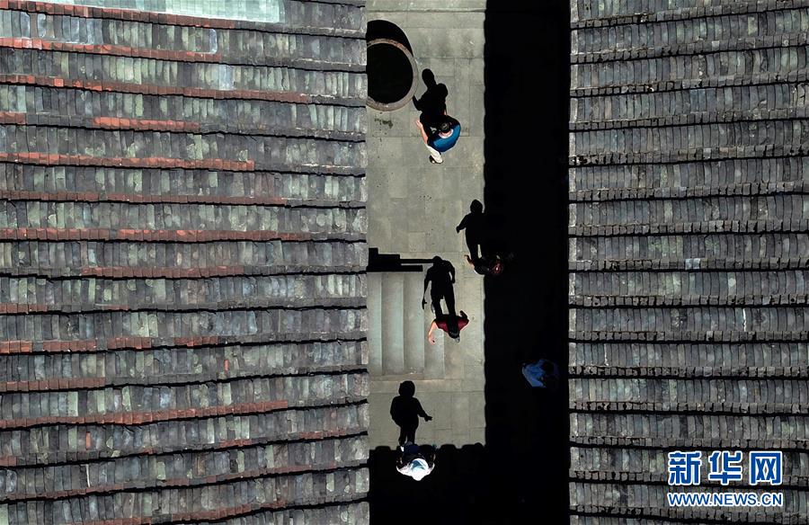 7月19日,游客們在永泰縣同安鎮(zhèn)愛荊莊里觀賞游玩(無人機照片)。近年來,福建省福州市永泰縣重視古莊寨保護與利用工作,遵循“保護為主、修舊如舊”原則,加大修繕保護力度,通過對古莊寨古村落等物質(zhì)載體進行活化利用,打造莊寨+旅游、莊寨+研學等產(chǎn)業(yè)發(fā)展模式,帶動鄉(xiāng)村振興。永泰縣地處福州西南部,擁有保存較好的古莊寨152座,面積1000平方米以上、年代100年以上98座。新華社記者魏培全攝