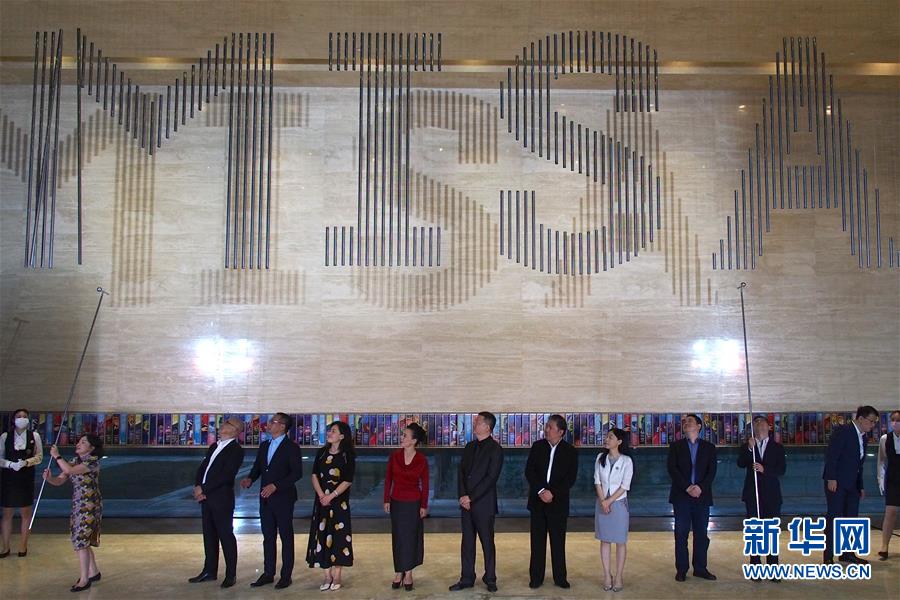 7月20日,嘉賓在開幕式現(xiàn)場敲響上海夏季音樂節(jié)裝置作品《風(fēng)鈴》。當晚,為期10天的2020上海夏季音樂節(jié)開幕。開幕音樂會上,余隆執(zhí)棒上海交響樂團演繹西貝柳斯的《圖翁內(nèi)拉的天鵝》《憂郁圓舞曲》和斯特拉文斯基《火鳥》組曲,并攜手龔琳娜帶來老鑼的歌曲《靜夜思》《山鬼》。新華社記者任瓏攝