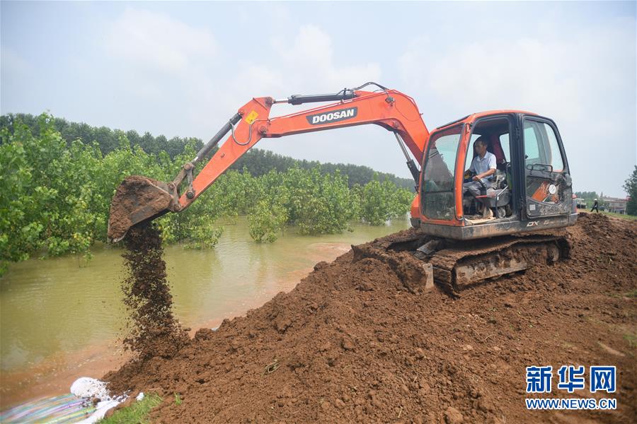 7月20日,在永固垸西線防洪大堤,工作人員處置滲漏險情。新華社記者陳澤國攝