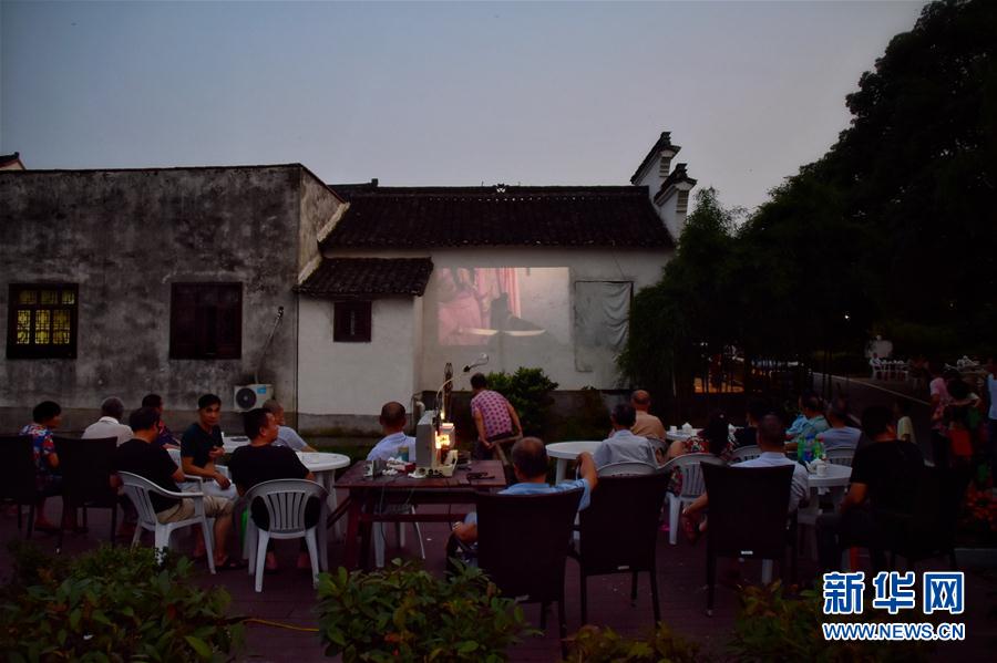 2020年6月30日,浙江嘉興桐鄉(xiāng)市洲泉鎮(zhèn)馬鳴村村民自發(fā)圍坐在廣場(chǎng)觀看電影。在浙江嘉興桐鄉(xiāng)市洲泉鎮(zhèn)馬鳴村,王志華、朱文炳、朱生榮、朱強(qiáng)四代電影放映員,“接力”放映電影五十余年。新華社記者鄭夢(mèng)雨攝