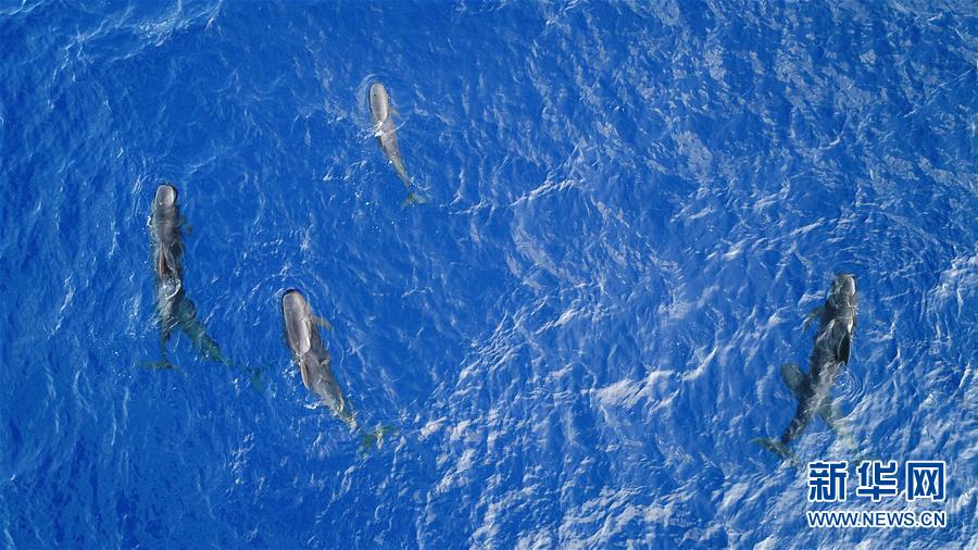 這是7月20日在南海某海域拍攝的短肢領(lǐng)航鯨(無人機照片)。新華社記者張麗蕓攝