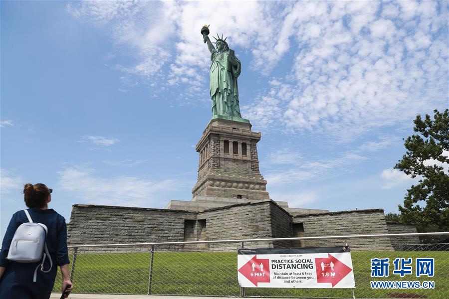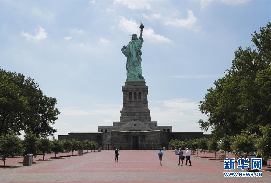 7月20日,參觀者在美國(guó)紐約自由島游覽。美國(guó)紐約市20日繼續(xù)推進(jìn)經(jīng)濟(jì)重啟計(jì)劃,宣布開(kāi)始進(jìn)入解封新階段,進(jìn)一步允許部分低風(fēng)險(xiǎn)文娛活動(dòng)重啟。自由女神像所在的自由島對(duì)公眾開(kāi)放,但雕像內(nèi)部和博物館仍關(guān)閉。新華社記者王迎攝