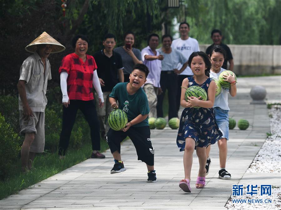 7月22日,廟兜村的孩子們在參加運西瓜比賽。當(dāng)日是大暑節(jié)氣,浙江省湖州市吳興區(qū)織里鎮(zhèn)廟兜村舉行了趣味“賽西瓜”比賽,迎接這個“火熱”的節(jié)氣。廟兜村種植有500多畝西瓜,目前正值西瓜豐收的時節(jié),村民們用“賽西瓜”的形式,感受豐收的喜悅。新華社記者徐昱攝