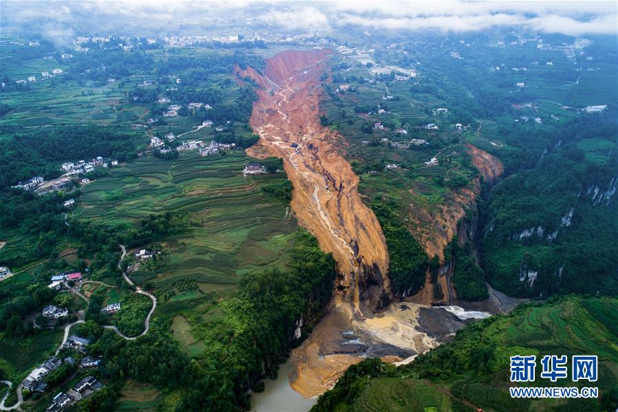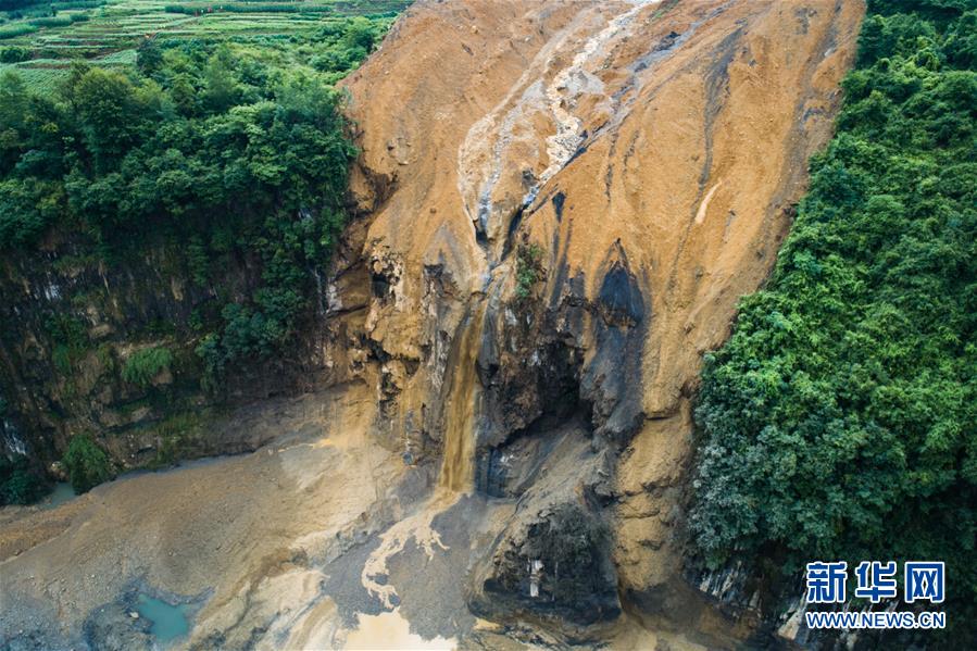 7月22日拍攝的因恩施州屯堡鄉(xiāng)馬者村山體滑坡形成的堰塞湖(無人機照片)。新華社記者肖藝九攝