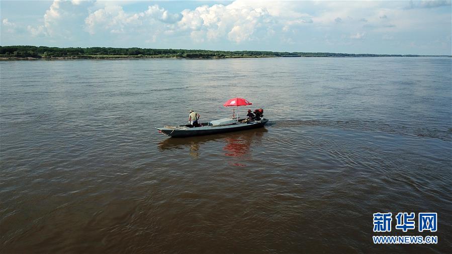 這是7月22日拍攝的在江中打魚的漁船(無人機照片)。新華社記者王建威攝