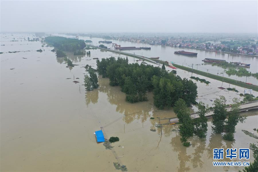 7月21日拍攝的被淹的南京市高淳區(qū)陽江鎮(zhèn)勝利圩(無人機照片)。新華社記者季春鵬攝
