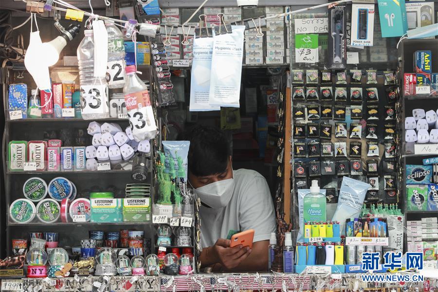 7月23日,在美國(guó)紐約時(shí)報(bào)廣場(chǎng),一名小販等待顧客。美國(guó)約翰斯·霍普金斯大學(xué)23日發(fā)布的新冠疫情最新統(tǒng)計(jì)數(shù)據(jù)顯示,美國(guó)累計(jì)確診病例超過400萬(wàn)例。數(shù)據(jù)顯示,截至美國(guó)東部時(shí)間23日15時(shí)34分(北京時(shí)間24日3時(shí)34分),美國(guó)累計(jì)確診病例4007859例,累計(jì)死亡病例143846例。新華社記者王迎攝