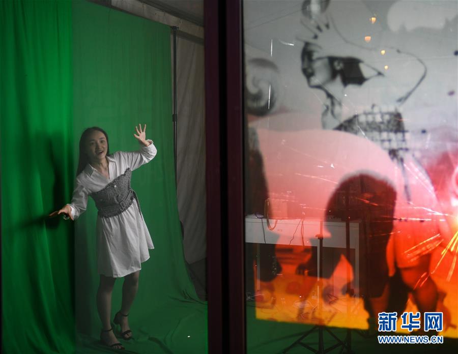 7月23日晚在成都市成華區(qū)望平街濱河路的天府文創(chuàng)大集市上拍攝的“共享直播間”。新華社記者 王曦 攝