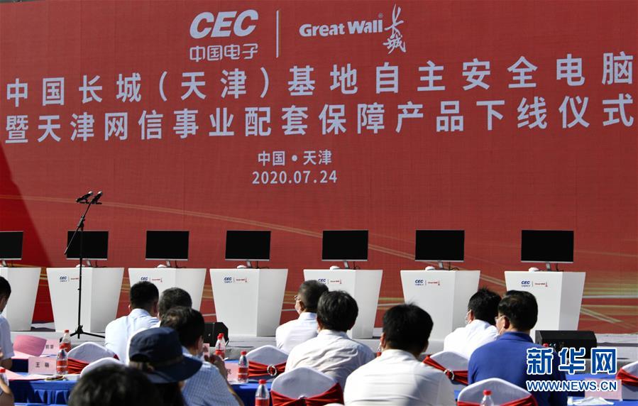 7月24日在中國長城(天津)基地拍攝的儀式現場。當日,中國長城(天津)基地自主安全電腦暨天津網信事業(yè)配套保障產品下線儀式在天津濱海高新區(qū)舉行。據了解,中國長城(天津)基地網信事業(yè)配套保障體系項目主要服務華北地區(qū),生產國產化自主安全電腦,建設國產化自主安全數據中心。新華社記者李然攝