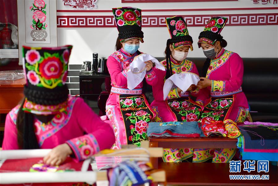 在陜西寧強縣大安鎮(zhèn)江林安置點一家羌族刺繡文化公司的傳習基地內(nèi),學員在進行練習(3月13日攝)。陜南地區(qū)地處秦巴山區(qū),是陜西脫貧攻堅的主戰(zhàn)場。近年來,陜南各縣區(qū)因地制宜、精準施策,通過發(fā)展社區(qū)工廠、特色種植、旅游扶貧、技能培訓、電商帶貨等措施,促進多種產(chǎn)業(yè)發(fā)展,助力農(nóng)民增收。新華社記者邵瑞攝